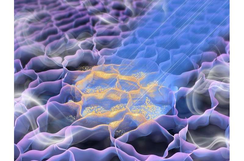 制造過(guò)程中激光誘導(dǎo)的石墨烯泡沫氣體傳感器的圖形表示。光線代表激光,它將納米材料刻在石墨烯泡沫基板上,用于檢測(cè)空氣和汗液中的氣體。來(lái)源:程氏集團(tuán)