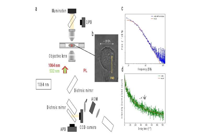 研究人員使用光鑷將納米金剛石顆粒捕獲在單個白血病細胞內(nèi),然后演示如何使用這些顆粒來測量細胞內(nèi)的磁噪聲。