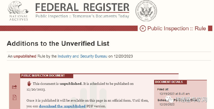 今日(12月20日),美國商務(wù)部又將13家中國實體列入“未經(jīng)核實清單”(UVL清單),本次被“拉黑”的實體大部分為電子類企業(yè),值得一提的是包含了一家國產(chǎn)傳感器公司。