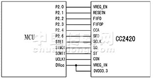 圖2 單片機(jī)與CC2420的接口電路