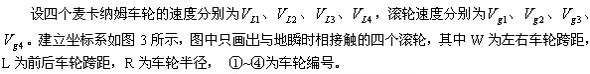 圖3 麥卡納姆車輪結(jié)構(gòu)與速度示意圖