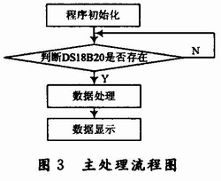 主處理模塊主要是將各個(gè)模塊進(jìn)行協(xié)調(diào)處理以實(shí)現(xiàn)數(shù)據(jù)交互。主處理模塊首先完成初始化工作,初始化后進(jìn)入循環(huán)處理,在循環(huán)過程中獲得采集模塊的數(shù)據(jù),并將數(shù)據(jù)進(jìn)行處理,根據(jù)處理后的結(jié)果進(jìn)行顯示。主處理的流程圖如圖3所示。