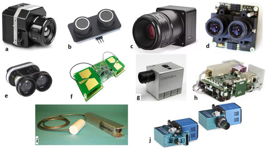 無人機(jī)04 00034 g004 550 圖4. 采礦無人機(jī)上常用傳感器的示例:(a)紅外傳感器[ 123 ],(b)超聲傳感器[ 124 ],(c)RGB攝像機(jī)[ 125 ],(d)立體攝像機(jī)[ 126 ],(e)激光測(cè)距儀[ 126 ],(f)超寬帶雷達(dá)(UWB)[ 127 ],(g)高光譜傳感器[ 128 ],(h)磁傳感器[ 129 ],(i)氣體探測(cè)器[ 130 ], (j)可見和近紅外光譜范圍(VNIR)[ 131 ]。