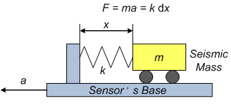 在大多數(shù)加速度傳感器中,彈簧不是盤簧,而是一種將質(zhì)量恢復(fù)到初始位置的東西。一些傳感器采用擺錘或隔膜代替彈簧。