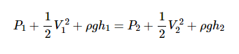其中P是流體壓力,ρ是流體的密度,V表示流體速度,g是由于重力引起的加速度。帶下標(biāo)1和2的變量 分別對(duì)應(yīng)于橫截面1和2處的流體參數(shù)。