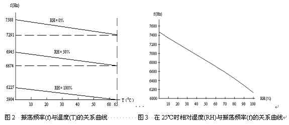 式中Δf RH0的值為297/65(Hz/℃);fRH0是溫度為0℃時相對濕度為0%RH的振蕩頻率,其值為7588(Hz);fRHX是溫度為0℃時相對濕度為X%RH的振蕩頻率。