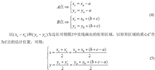 最大最小值法估計(jì)得到的坐標(biāo)值由于是取矩形區(qū)域的質(zhì)心代替實(shí)際位置,若測(cè)得的距離值本身就存在較大的誤差,那么得出的結(jié)果沒(méi)有三邊定位精確,在一些要求精度不是很嚴(yán)格的情況或者是結(jié)果經(jīng)過(guò)求精之后,可以滿足需要。