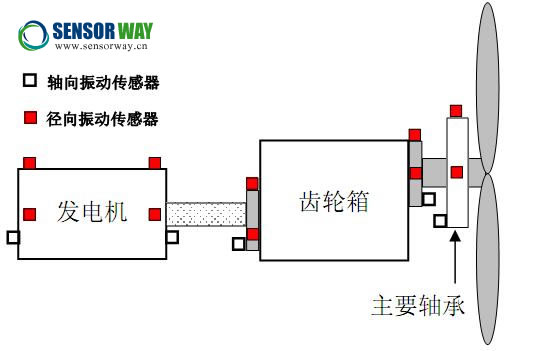 帶有加速度振動(dòng)傳感器的水平布置的風(fēng)力發(fā)電機(jī)組