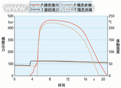 圖2:用模腔壓力和溫度綜合感應(yīng)器測得的工藝情況