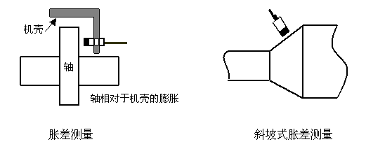 對于汽輪發(fā)電機(jī)組來說,在其啟動和停機(jī)時,由于金屬材料的不同,熱膨脹系數(shù)的不同,以及散熱的不同,軸的熱膨脹可能超過殼體膨脹;有可能導(dǎo)致透平機(jī)的旋轉(zhuǎn)部件和靜止部件(如機(jī)殼、噴嘴、臺座等)的相互接觸,導(dǎo)致機(jī)器的破壞。因此脹差的測量是非常重要的。