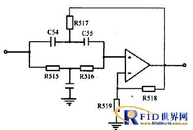 圖5所示為50Hz工頻陷波器采用典型的有源雙T陷