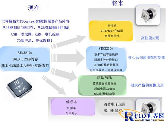從功率開(kāi)關(guān)分立器件,到復(fù)雜的系統(tǒng)芯片,意法半導(dǎo)體承諾以其獨(dú)有的產(chǎn)品組合長(zhǎng)期支持電機(jī)控制市場(chǎng)。STM32微控制器產(chǎn)品線將繼續(xù)沿四個(gè)新方向部署,如圖3所示,其中兩個(gè)方向適用于電機(jī)控制。第一個(gè)產(chǎn)品線將面向低成本市場(chǎng),開(kāi)發(fā)低端的16位電機(jī)控制微控制器。另一個(gè)產(chǎn)品線以高性能為訴求,面向需要更高處理性能、更大存儲(chǔ)容量和高帶寬接口的應(yīng)用。如此寬廣的產(chǎn)品組合結(jié)合Cortex-M3內(nèi)核,勢(shì)必確立STM32架構(gòu)適用于現(xiàn)在和未來(lái)電機(jī)驅(qū)動(dòng)的多功能性。