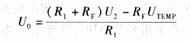 例如:R1=100k,RF=10M時,在室溫T=25℃時,UTEMP=1.6V,調(diào)節(jié)100k電位計使U2=1.65V,