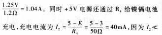 當溫度升高時(約5℃),傳感器輸出電壓UTEMP變大,使得電壓比較器輸出低電平,此時VD導通,LM317的調(diào)整端電位UADJ≈0.7V,進而使+Vout=E0+UADJ=1.25+0.7≈2V,由于R3的下端接電池的正極,因此LM317處于反向偏置狀態(tài)而不工作。此時靠流經(jīng)電阻R4上的電流I2給電池充電。