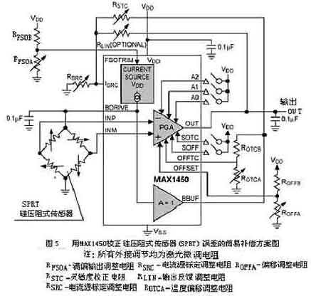 7.1MAX1450信號調理器的功能本質與MAX1457相同,只是用電阻代替DAC來進行誤差校正。
