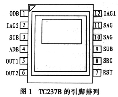 圖1示出TC237B型圖像傳感器采用12引腳雙列直插封裝的引腳排列,其引腳功能如表l所列。TC237B的主要特點如下: