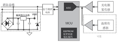 圖1表示了煙霧傳感器的一般結構。環(huán)路中的每一只煙霧傳感器都具有唯一的地址編碼。