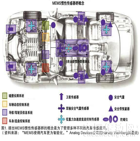 汽車慣性傳感已成為另外一個(gè)熱點(diǎn)。實(shí)際上,Motorola和Analog Devices提議使用慣性傳感元件組來管理大量的將用于車輛動(dòng)態(tài)、導(dǎo)航、安全和電子轉(zhuǎn)向應(yīng)用的傳感功能(插圖1)。