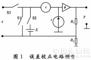 式中:b1和b0為誤差校正因子。誤差校正電路模型如圖1所示,其中x為被測信號;y為系統(tǒng)輸出;ε,k,i為影響系統(tǒng)的未知量。