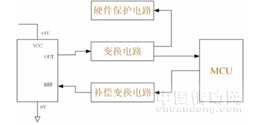 ASIC可以工作在自己內(nèi)部精確固定的內(nèi)部參考電壓(2.5V),也可以工作在外部參考電壓(Vref),外部參考電壓在2V~2.8V之間。在應(yīng)用內(nèi)部參考電壓的時(shí)候,需要在此管腳單立并最少接入200kΩ的負(fù)載阻抗。這個(gè)參考電壓可以在任何時(shí)候被MCU監(jiān)控補(bǔ)償傳感器的初始偏置。