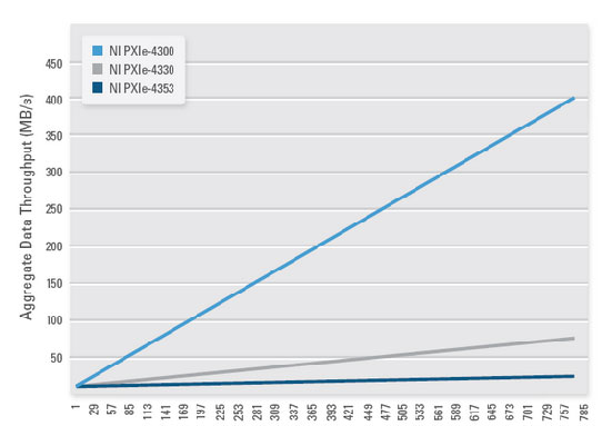 SC Express模塊基于PXI Express總線,提供了每通道250 MB/s帶寬將數(shù)據(jù)傳送到控制器上。如圖2所示,在不超過通信總線帶寬的情況下,全新的SC Express模塊可以擴(kuò)展到更高通道數(shù)。