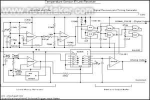 因為恢復輸入信號(SIGNAL-PULSE)的周期正比于遠程傳感器處的溫度,所以,在第2個SIGNAL-PULSE到達時,所呈現(xiàn)的斜波電壓也是正比于溫度。由S&H電路存儲的電壓形成到3個有效數(shù)字的穩(wěn)定模擬輸出。強烈環(huán)境光照IR鏈路的范圍大約為20英尺。