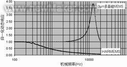 該技術(shù)的高深寬比加上高于真空的氣密封性可實(shí)現(xiàn)過阻尼機(jī)械響應(yīng)。圖1中對比了HARMEMS的機(jī)械響應(yīng)和3?m的欠阻尼多晶硅MEMS(Poly-MEMS)設(shè)備的機(jī)械響應(yīng)。多晶硅MEMS設(shè)備受到激發(fā)產(chǎn)生共振(在此設(shè)計(jì)中,頻率高于10 kHz);相反,HARMEMS設(shè)備并沒表現(xiàn)出共振,但是其截止頻率低于1 kHz。