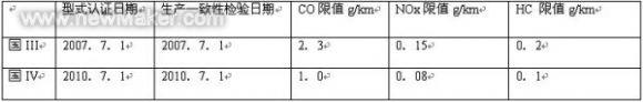 表:I型試驗排放限值及法規(guī)執(zhí)行日期