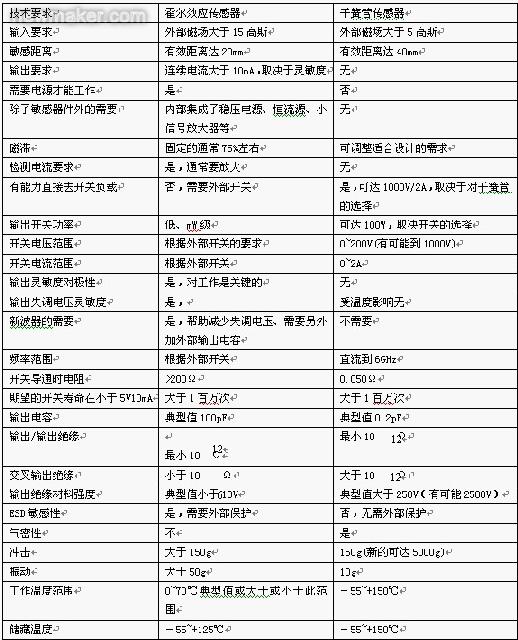 在干簧管和霍爾效應兩種傳感器的技術上,其尺寸都在縮小。然而,當干簧管傳感器與霍爾效應傳感器相比較時(見附表),可以看到干簧管的一些優(yōu)點: