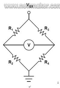 許多壓力傳感器使用微機電系統(tǒng)(MEMS)技術,它們由4個采用惠斯頓電橋結構連接的壓敏電阻組成。當這些傳感器上沒有壓力時,橋中的所有電阻值都是相等的。當有外力施加于電橋時,兩個相向電阻的阻值將增加,而另兩個電阻的阻值將減小,而且增加和減小的阻值彼此相等。