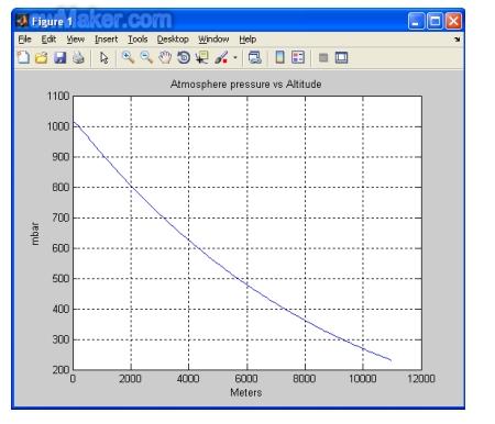 圖1根據(jù)上面的公式描述了大氣壓變化與海拔高度的關(guān)系。