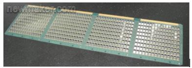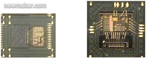 在堆疊結(jié)構(gòu)中,先用膠合膜將傳感器裸片焊到一個(gè)表面積很大的基片上(圖4)。半導(dǎo)體裸片和MEMS裸片堆疊放置可使封裝變得很小(圖5)。使用絲焊方法連接兩顆裸片的電觸點(diǎn),然后,再用注塑封裝技術(shù)封裝裸片。這種封裝方法可以在大面積的基片完成,因此成本相對(duì)較便宜。封裝應(yīng)力特別是粘接和注塑過(guò)程產(chǎn)生的應(yīng)力曾經(jīng)是這項(xiàng)封裝技術(shù)的一大挑戰(zhàn),意法半導(dǎo)體成功地解決了這個(gè)難題。圖6描述了意法半導(dǎo)體的超緊湊型線性加速計(jì)封裝的進(jìn)化歷程,線性加速計(jì)廣泛用于消費(fèi)電子產(chǎn)品。
