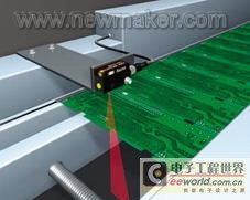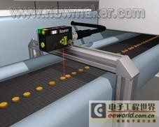 圖2 使用激光傳感器傳送帶上的小型元器件進(jìn)行可靠檢測。