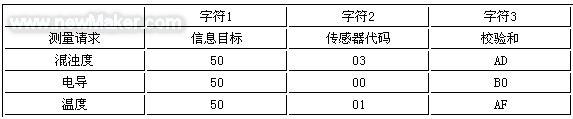 該傳感器的信息格式有兩種:一種是傳感器輸入信息,另一種是傳感器輸出信息。傳感器輸入的信息格式見表1所列。它只有3種有效的信息,字符1、字符2和字符3分別對應(yīng)于信息目標(biāo)、傳感器代碼和校驗和。