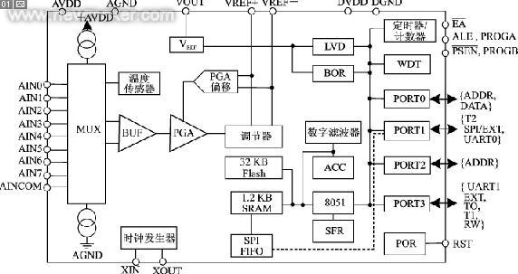 圖1 MSC1210 ADC方框圖