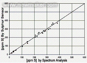 圖4 硫取樣光譜分析與傳感器測(cè)定結(jié)果的比較