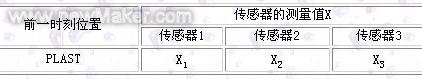 通過分析我們發(fā)現(xiàn):圖3中每個(gè)具體位置是由不同傳感器所包圍形成的,人員從不同位置移向另一位置時(shí),相應(yīng)傳感器測(cè)得的數(shù)據(jù)會(huì)發(fā)生較大變化,而其它傳感器的數(shù)據(jù)變化小于某個(gè)值△k。即:人員的位置(Position)由上一時(shí)刻人員的位置PLAST和該時(shí)刻三個(gè)傳感器的電平經(jīng)A/D轉(zhuǎn)換后的數(shù)值X(X1、X2和X3)確定,并且給定PLAST和X(X1,X2,X3),可唯一確定Position,他們之間滿足下列函數(shù)關(guān)系式: