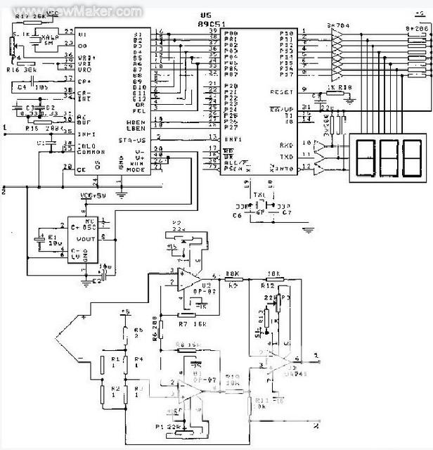 下面介紹一個典型的單片機控制的測溫系統(tǒng),它由三大部分組成:(1)測量放大電路;(2)A/D轉(zhuǎn)換電路;(3)顯示電路。它廣泛應用于發(fā)電廠、化工廠的測溫及溫度控制系統(tǒng)中。