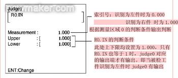 在此,OMRON視覺檢測系統(tǒng)中使用的是專家菜單下的分類檢測方法。將不同類型球頭銷上的標識(L或R)分別登錄在不同的索引號下(0或1),視覺控制器通過相應的相機將被檢工件上的標識拍攝下來,然后將其與已登錄的各個索引號下的標準標識圖像比較,找到一個與被檢球頭銷標識圖像最接近的標準標識畫面,即認為被檢球頭銷與該標準球頭銷屬于同一類型,然后輸出該標準球頭銷的索引號。