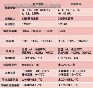 表1、硅壓阻壓力傳感器的典型技術(shù)參數(shù)