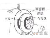 壓電類傳感器的基本特點是,與VOC的接觸響應(yīng)形式體現(xiàn)為頻率的變化。它又分為石英晶體微量天平(QCM)傳感器和聲表面波(SAW)傳感器兩種。壓電類傳感器既可以測量溫度和質(zhì)量的變化,又可測量壓力、力和加速度等參數(shù),但在電子鼻系統(tǒng)中,它們一般只作為質(zhì)變量傳感探測器使用。QCM傳感器是一個幾毫米直徑的諧振盤,盤面敷有聚合物材料,每面有一個與導(dǎo)線相連的金屬電極,結(jié)構(gòu)如圖2所示。當(dāng)該傳感器受振蕩信號激勵時,便諧振于特征頻率(10Hz~30MHz),而一旦氣體分子被吸收到聚合物涂層表面,就增加了該盤的質(zhì)量,因此降低了諧振頻率,諧振頻率的高低與所吸收的氣體分子質(zhì)量成反比。QCM傳感器對不同氣體的響應(yīng)、選擇性可通過調(diào)整諧振盤聚合物涂層來改變,而減小石英晶體的尺寸和質(zhì)量,并減小聚合物涂層的厚度,則可進(jìn)一步縮短傳感器的響應(yīng)時間和恢復(fù)時間。