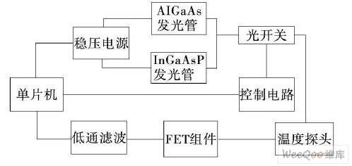 許忠保等人利用半導體光吸收原理設計了一種可在高壓、強電磁干擾環(huán)境下應用的溫度傳感器。 圖3 所示是系統(tǒng)的工作原理圖。