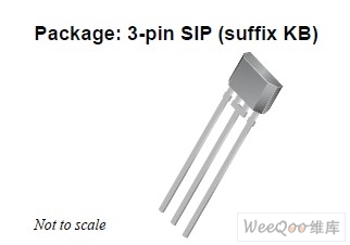 A1356傳感器采用無(wú)鉛3引腳單列直插封裝(KB 后綴),引腳框采用 100% 霧錫電鍍。