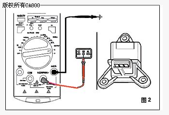 2.關(guān)閉點(diǎn)火開(kāi)關(guān),斷開(kāi)傳感器的電子連接接頭。黑色表筆插到儀器的“OUTPUT—”的插孔,另一端搭鐵(可以使用鱷魚(yú)夾),紅色表筆插到“+OUTPUT”插孔,另一端與傳感器的輸入信號(hào)線連接(可以使用萬(wàn)用測(cè)試線)。
