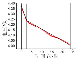 式中,V0為初始電壓,單位為V,t為時(shí)間,單位為小時(shí)。