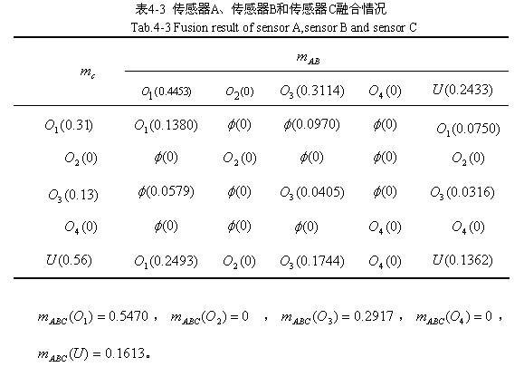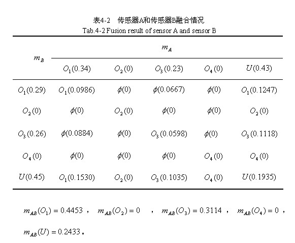 將D-S證據(jù)理論應用于多傳感器數(shù)據(jù)融合時,從傳感器獲得的相關(guān)數(shù)值就是該理論中的證據(jù),它可構(gòu)成待識別目標模式的信度函數(shù)分配,表示每一個目標模式假設(shè)的可信程度,每一傳感器形成一個證據(jù)組。多傳感器數(shù)據(jù)融合就是通過聯(lián)合規(guī)則聯(lián)合幾個證據(jù)組形成一個新的綜合的證據(jù)組,用聯(lián)合規(guī)則聯(lián)合每個傳感器的信度函數(shù)分配形成融合的信度函數(shù)分配,從而為目標模式的決策提供綜合準確的證據(jù)。