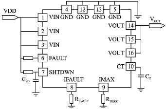 UCC3918芯片的基本工作原理是:當輸出電流低于最大允許電流值IMAX時,UCC3918工作在低阻抗導通狀態(tài)。當輸出電流大于最大允許電流或者故障電流門限值時,保持電路導通;同時,故障計時器向電容CT充電,一旦電容CT電壓達到預設門限值,將關斷電流輸出30倍充電時間。輸出電流降到最大允許電流值以下時,UCC3918從開關狀態(tài)回到低電阻導通狀態(tài)。UCC3918還提供了快速過流保護,當電流急速越過故障電流門限值時,快速過流保護會關斷電流輸出。在電路短路等極端條件下,此功能為器件提供有效保護。