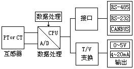 其中,CT為電流互感器,PT為電壓互感器,輸出一般為0~5V或4~20mA。