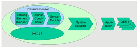 汽車傳感器在安全方面的應(yīng)用正日益增加。對于可以在危險的剎車條件下減小剎車距離的剎車輔助系統(tǒng)來說,需要一個傳感器來測量剎車系統(tǒng)的壓力,使得ECU能夠檢測出由駕駛員所發(fā)出的剎車動作。傳感器是激活A(yù)BS的關(guān)鍵,故傳感器必須100%準(zhǔn)確。