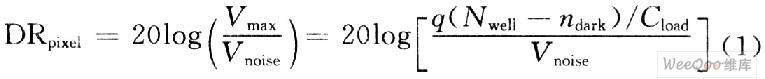 式中:q為單位電荷量;Cload為充電節(jié)點電容;Nwell為最大井容量(Well Capacity),表示為VN×Cload;ndark為無光照情況下像素的暗電流;Vnoise為像素噪聲標準差,包括固定模式噪聲(FPN)和1/f噪聲。從式(1)可以看出,在Cload不變的情況下,VN在充電周期的最大值決定了Nwell,而VN在積分周期的最小值決定Ndark的最小值,因此VN的電壓擺幅直接影響了傳感器的動態(tài)范圍。